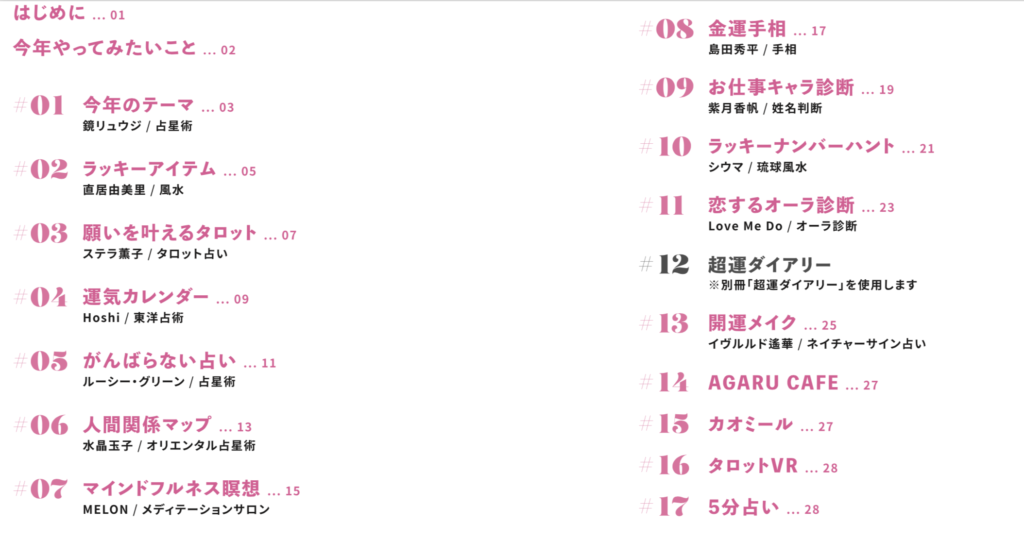 7回目となる目黒の会場は開運要素が盛りだくさん。占いフェスの定番ともいえる「パーソナル占い」コーナーはそのままに、人気占い師たちが監修した12のブースからなる「開運ワークショップ」や、直接鑑定が受けられる「5分占い」、開運メイクやタロットVRなどのコーナーから構成。2020年の運気をアゲるために、それぞれのワークショップを巡りながら、オリジナルの「開運ノート」を完成させていくことができる。