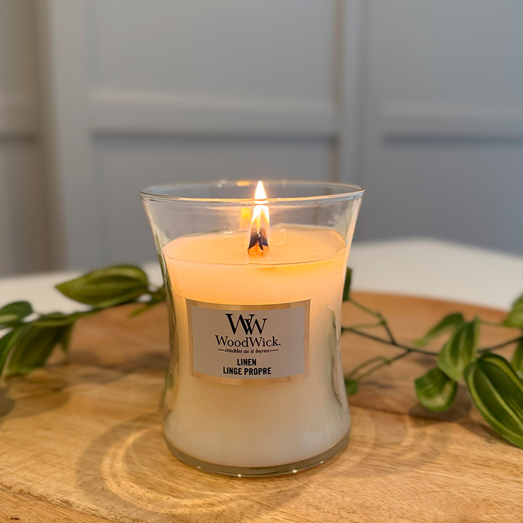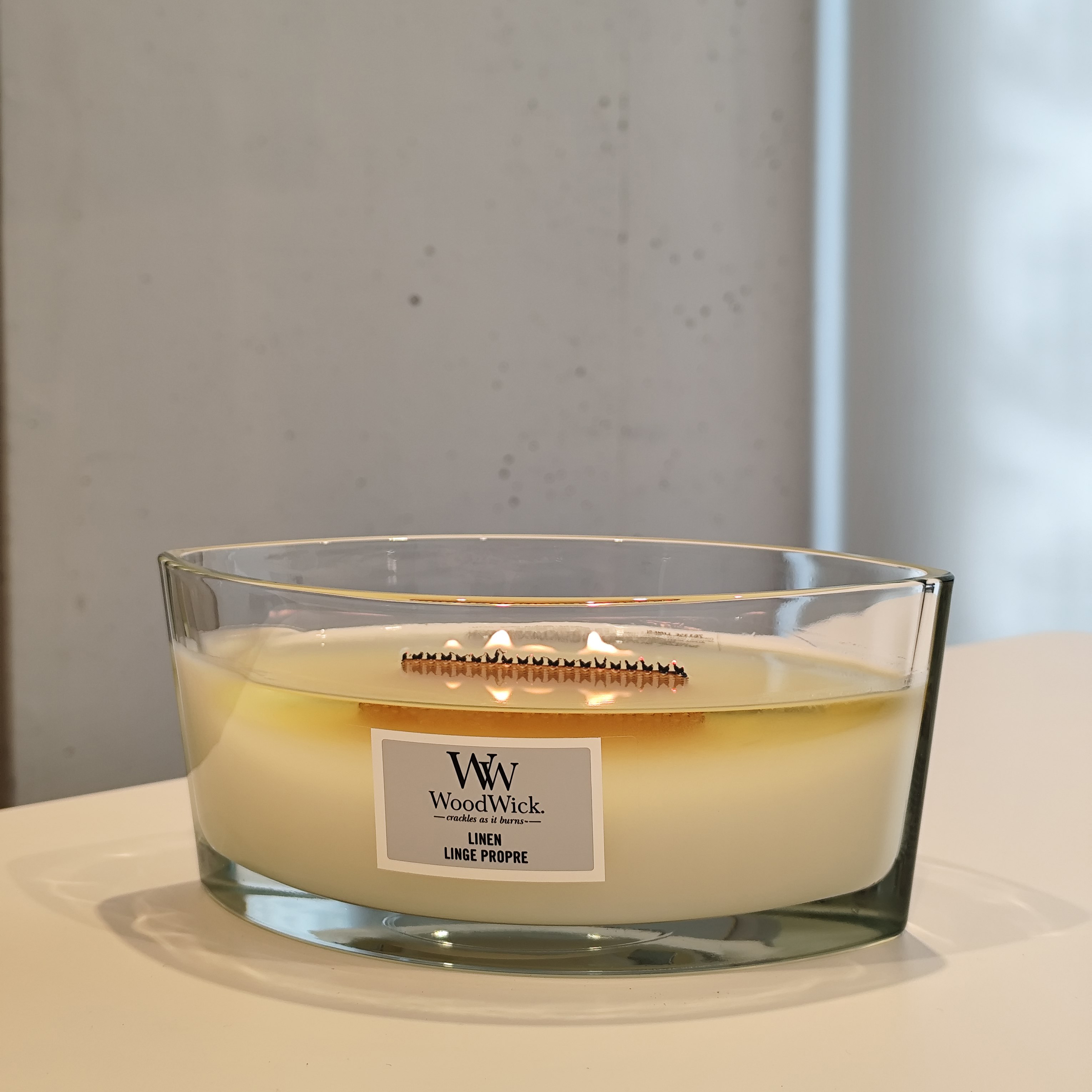 パチパチと焚火のような音が楽しめるキャンドル「WoodWick(ウッドウィック)」よりリネンの香りが復活!