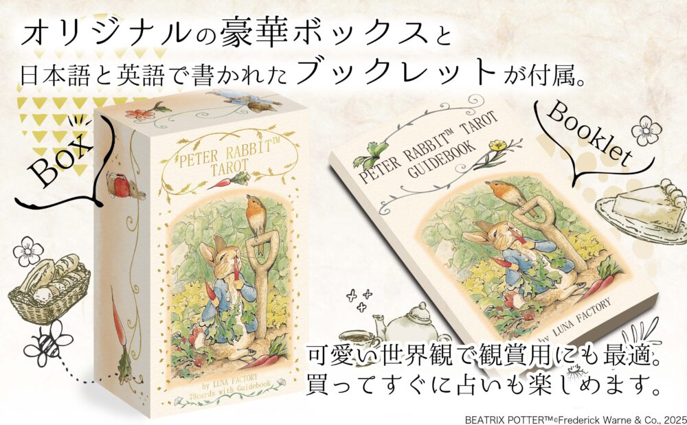 キャラクターグッズの企画・製造を手掛ける株式会社ルナファクトリーは、世界中で愛され続ける「ピーターラビット™」の公式ライセンス商品『PETER RABBIT™ TAROT』を、【2025年11月5日】より発売開始いたします。