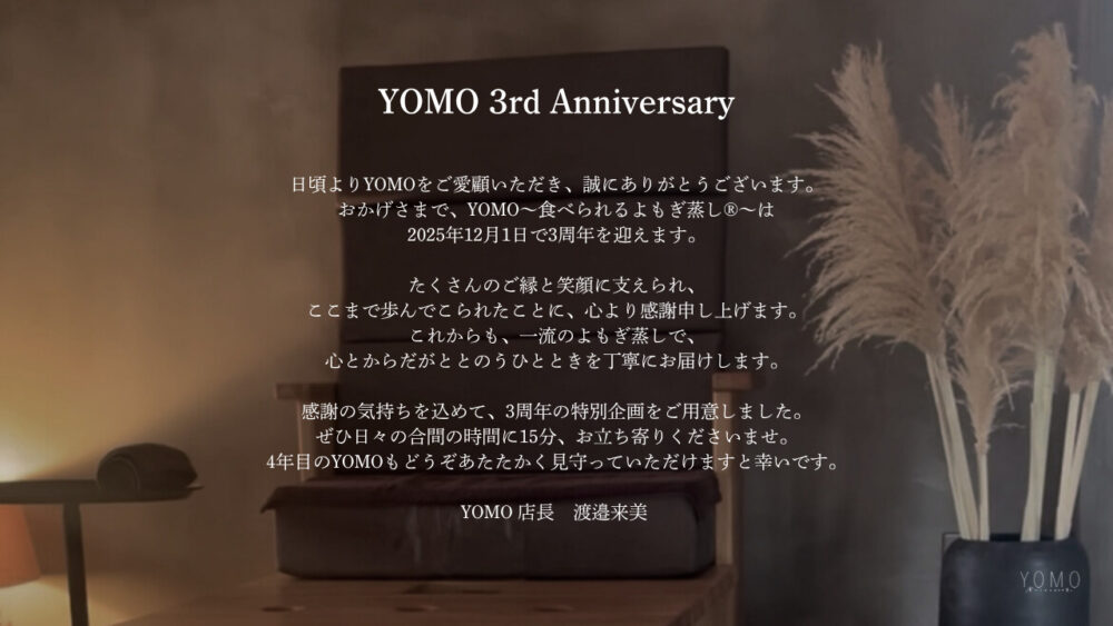 4年目のYOMOも、皆さまにとって“自分を大切にできる場所”であり続けられるよう、スタッフ一同、精進いたします。